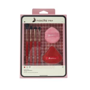 NASCITA PRO 4-PIECE MAKE-UP BRUSH & 2-PIECE PUFF SET ناسيتا مجموعة فرش مكياج بأشكال متنوعة