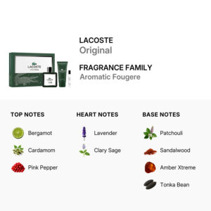 LACOSTE Men’s Original Eau de Parfum Gift Set (100ml+ 7.5ml) + 100ml Shower Gel لاكوست بكج هدايا للرجال