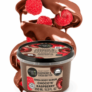 ORGANIC SHOP CHOCO RASPBERRY SILKY SOFT bosy scrub 250ml اوركانك شوب مقشر للجسم ناعم وحريري بنكهة الشوكولاتة والتوت
