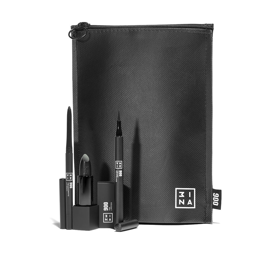 مجموعة 900! ثلاثة ألوان سوداء غير لامعة مميزة في حقيبة واحدة: قلم تحديد العيون “24H Pen Eyeliner” الأكثر مبيعًا عالميًا، وأحمر الشفاه “900” وأحمر الشفاه “900” الجديد كليًا. والأجمل من ذلك كله؟ تأتي على شكل حقيبة مكياج أنيقة للغاية، بحجم مثالي، وقابلة لإعادة الاستخدام.