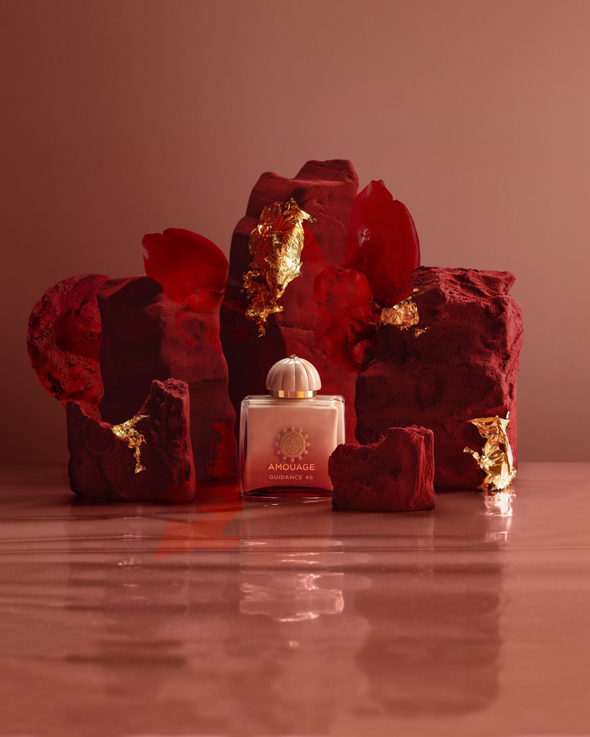 في البداية، ينطلق عطر “Guidance 46″، الذي يحتوي على ٤٦٪ من الزيوت العطرية، بنفحات خفيفة ومشرقة. تطفو رائحة الكمثرى المألوفة برفق في الهواء، تحملها نسمة زهرية رقيقة، معززة الآن بلمسات من اللوز المر والفلفل الوردي لتشكل مزيجًا راقيًا مع البندق. ومع ذلك، يضفي الورد والزعفران والياسمين السامباك والأوسمانثوس عمقًا مميزًا على تركيبة العطر. ويعزز البخور سحر العطر، كاشفًا عن قصة آسرة تأخذنا في رحلة عبر حديقة خفية تتصاعد منها خيوط الدخان. تتعمق رائحة الأخشاب لتصبح أكثر قتامة وهيمنة بفضل خشب الجورجيوود والسيبريول، بينما يضفي الأمبريت لمسة حميمية غنية، مع تكرار لمحة من الكمثرى لمزيد من الوضوح والانسجام. بالإضافة إلى نفحات الفانيليا وخشب الصندل والسيستوس والعنبر وخشب الأكيجالا من تركيبة ماء العطر، تخلق هذه العناصر قاعدة غنية وكريمية ذات تعقيد لا مثيل له.