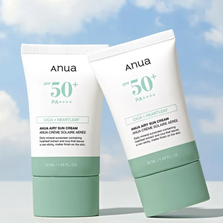 ANUA CICA + HEARTLEAF Airy Sun Cream spf50+ 50ml انوا كريم واقٍ من الشمس خفيف الوزن