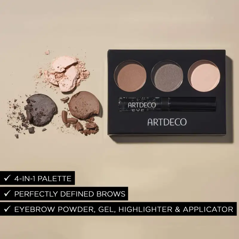 مجموعة الحواجب من ARTDECO! لوحة واحدة – أربعة منتجات. مصممة بمرآة مدمجة، ستصبح هذه المجموعة رفيقتكِ اليومية الأساسية!