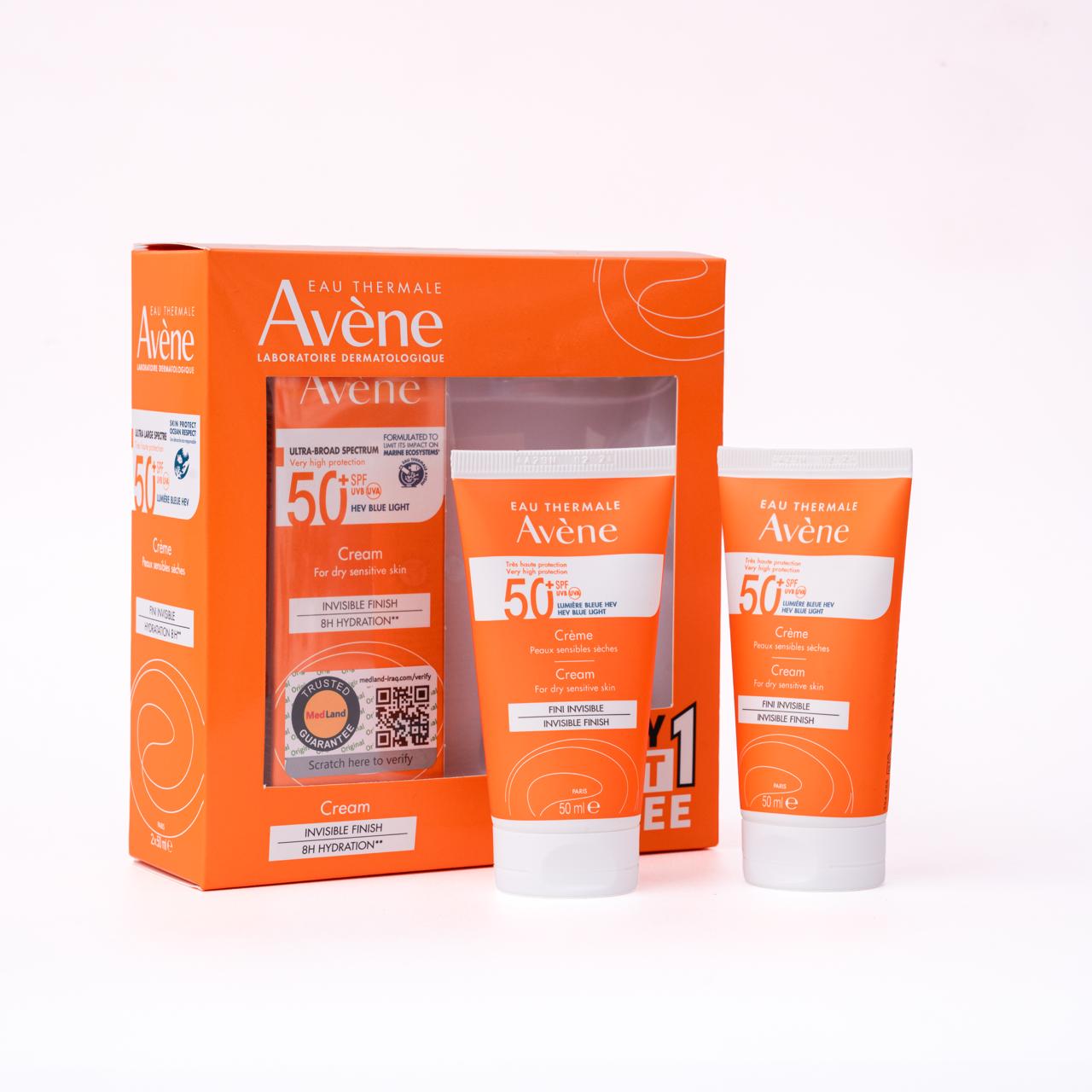 AVÈNE VERY HIGH PROTECTION CREAM SPF50+ FOR DRY SENSITIVE SKIN BUY GET FREE 1+1 أڤين بگج واقي شمس واحد + واحد مجاناً