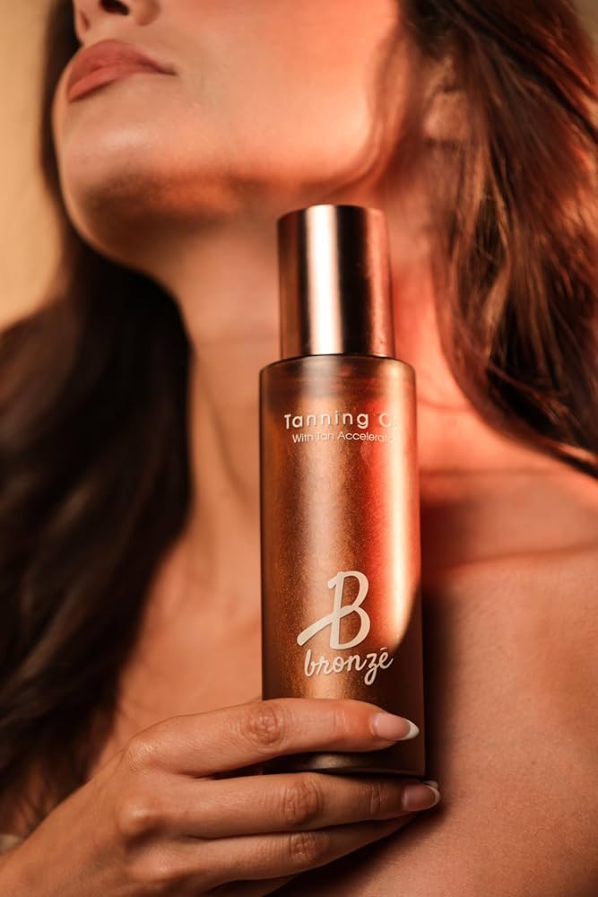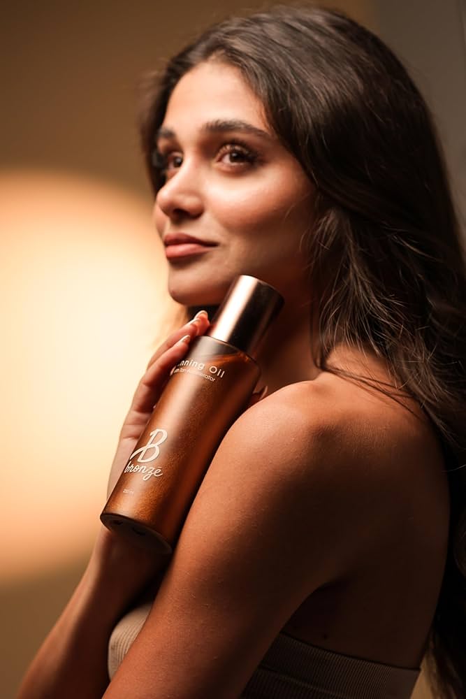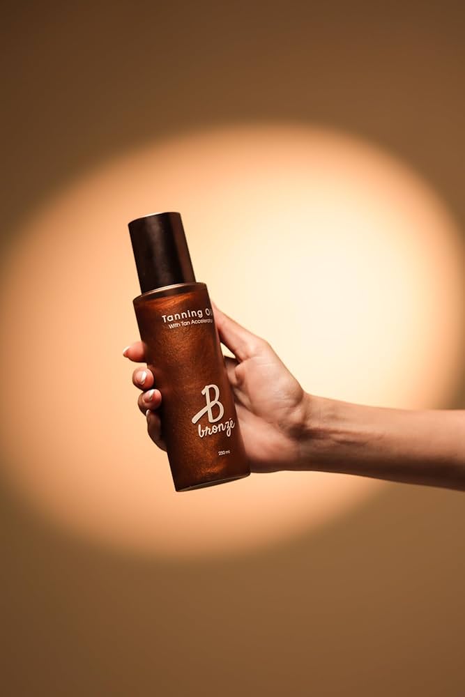 زيت التسمير الداكن “بي برونز” مُسرّع للسمرة الداكنة بزيت جوز الهند وزيت الجزر وماء جوز الهند نباتي، خالٍ من القسوة، خالٍ من الأوكسي بنزون، ومقاوم للماء مثالي لإشراقة سريعة وعميقة وطبيعية .