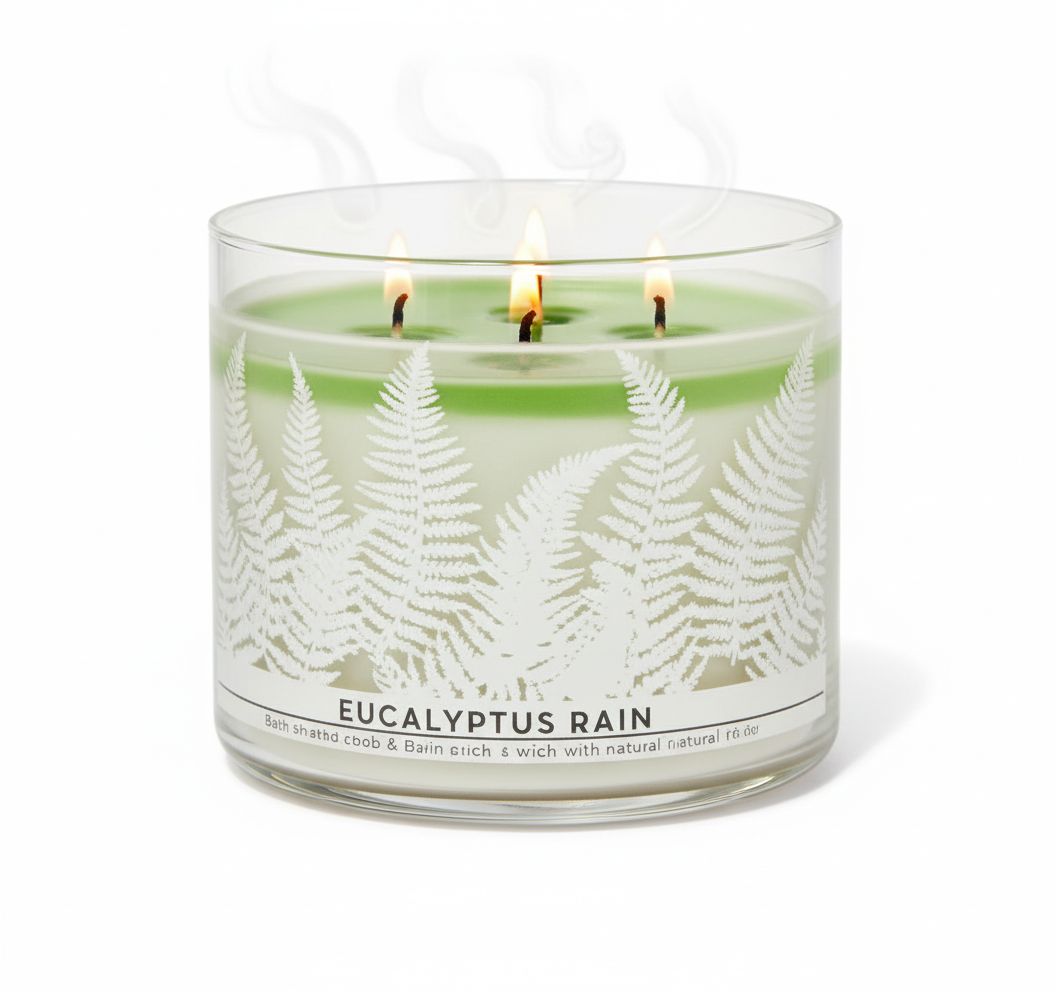 BATH BODY WORKS EUCALYPTUS RAIN CANDLE شموع معطر