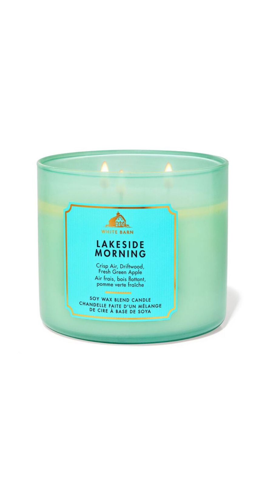 شمعة “Lakeside Morning” الرائعة المكونة من 3 قطع. صُممت هذه الشمعة لتضفي على غرفتك شعورًا بالانتعاش والهدوء.