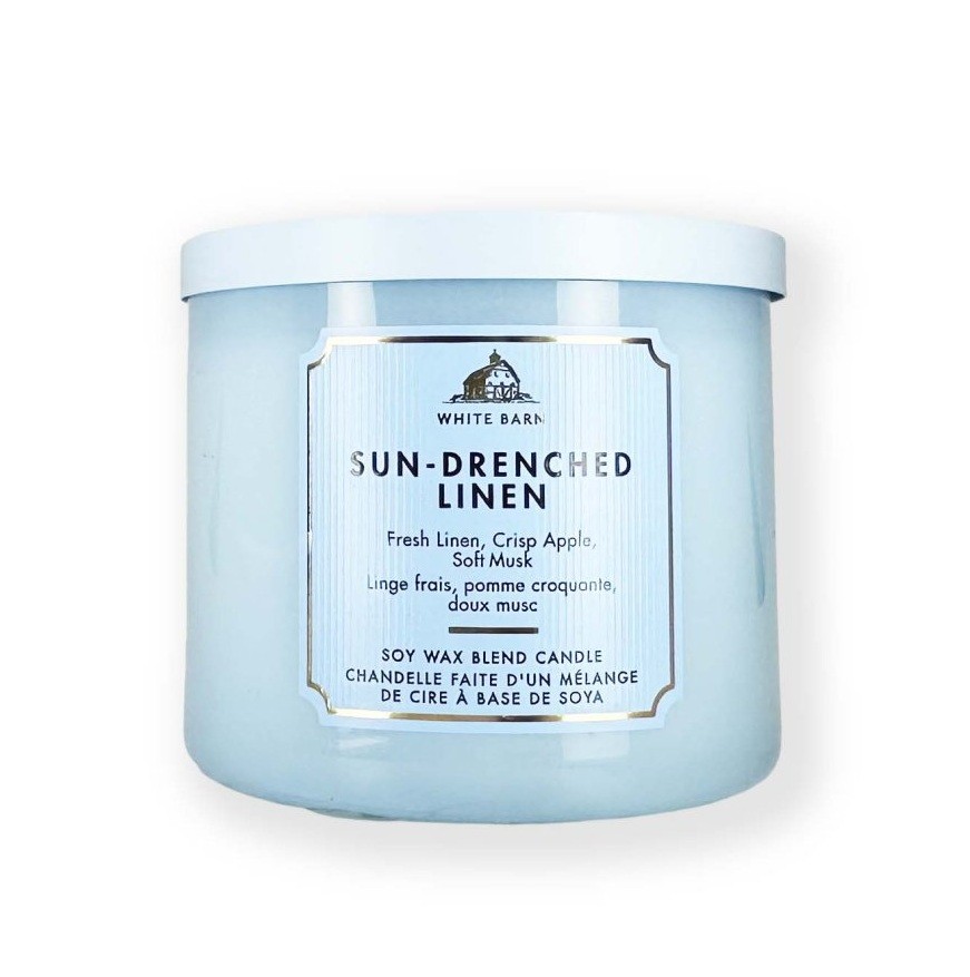 BATH & BODY WORKS SUN-DRENCHED LINEN 3-Wick Candle شمعة بثلاث فتائل من باث آند بودي وركس