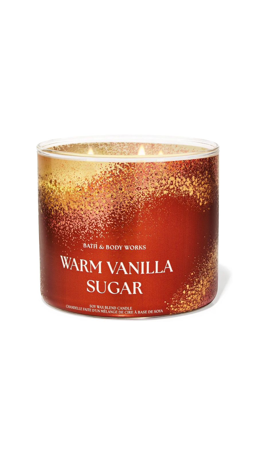 شمعة Warm Vanilla Sugar الشهيرة من Bath & Body Works وهي شمعة معطرة بـ 3 فتلات (3-Wick Candle تُعد من أكثر الروائح كلاسيكية وتفضيلاً لدى عشاق العطور المنزلية توفر رائحة كريمية نوتات تتكون من مزيج غني يجمع بين الفانيليا الآسرة، الأوركيد الأبيض، السكر المتلألئ الياسمين المنعش وخشب الصندل الكريمي مصنوعة من مزيج حصري من شمع الصويا Soy Wax Blend مع تركيز عالٍ من الزيوت العطرية الطبيعية لضمان انتشار الرائحة في كامل الغرفة .