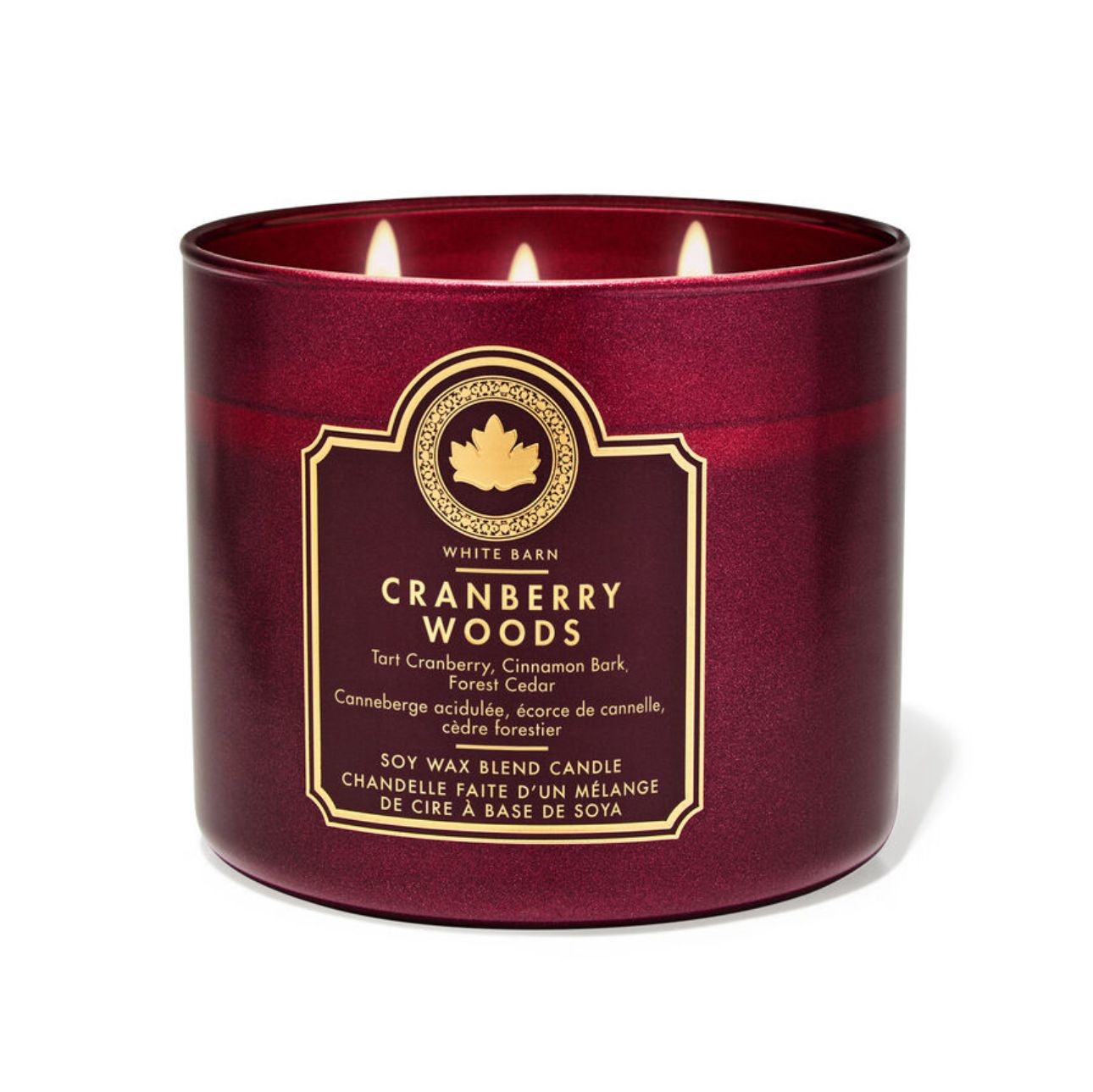 BATH & BODY WORKS WHITE BARN CRANBERRY WOODS شمعة معطرة بثلاث فتائل من باث آند بودي وركس