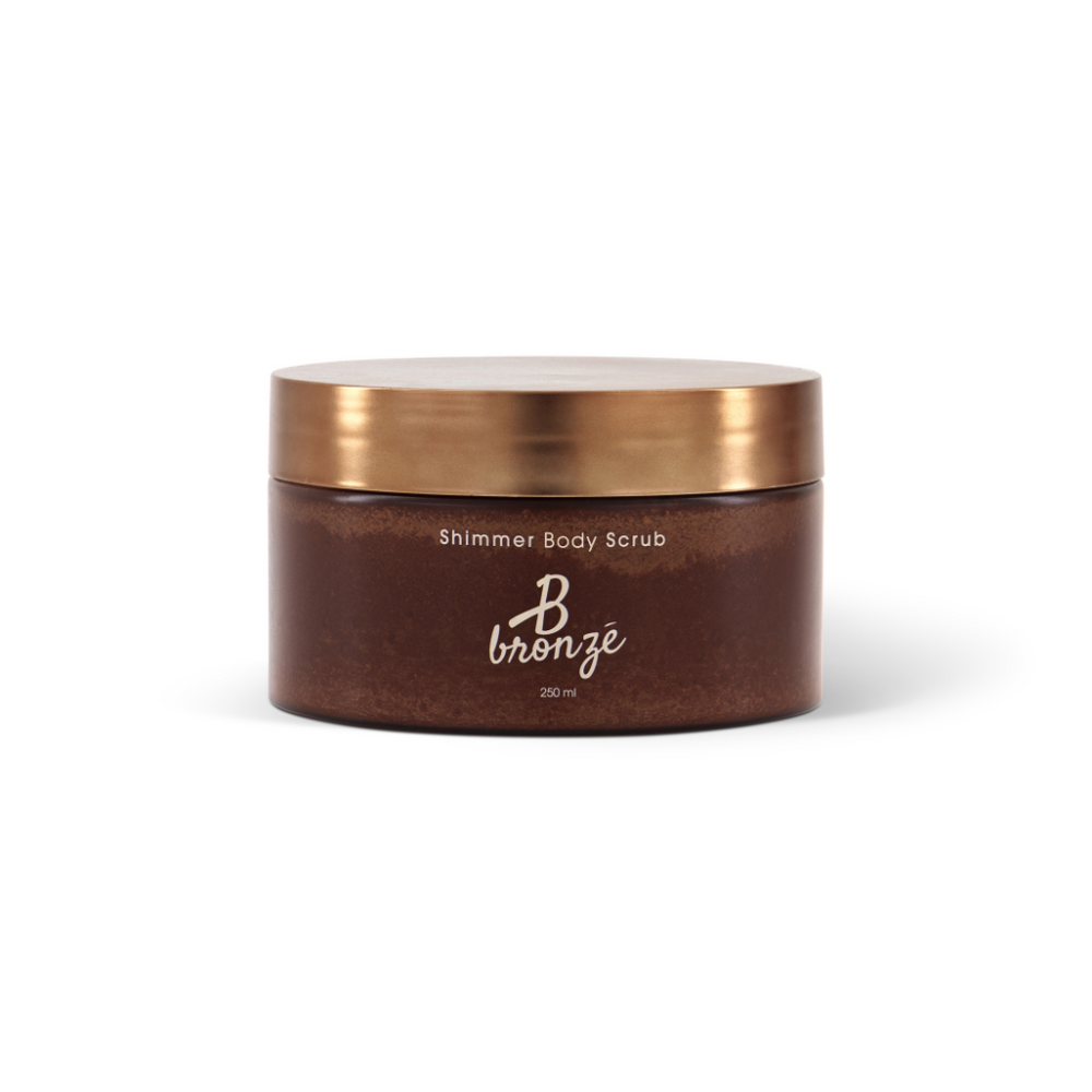 تُظهر الصورة “مقشر الجسم البرونزي اللامع” في عبوة سعة 250 مل. صُمم هذا المنتج لتقشير البشرة مع ترك لمعان برونزي خفيف.