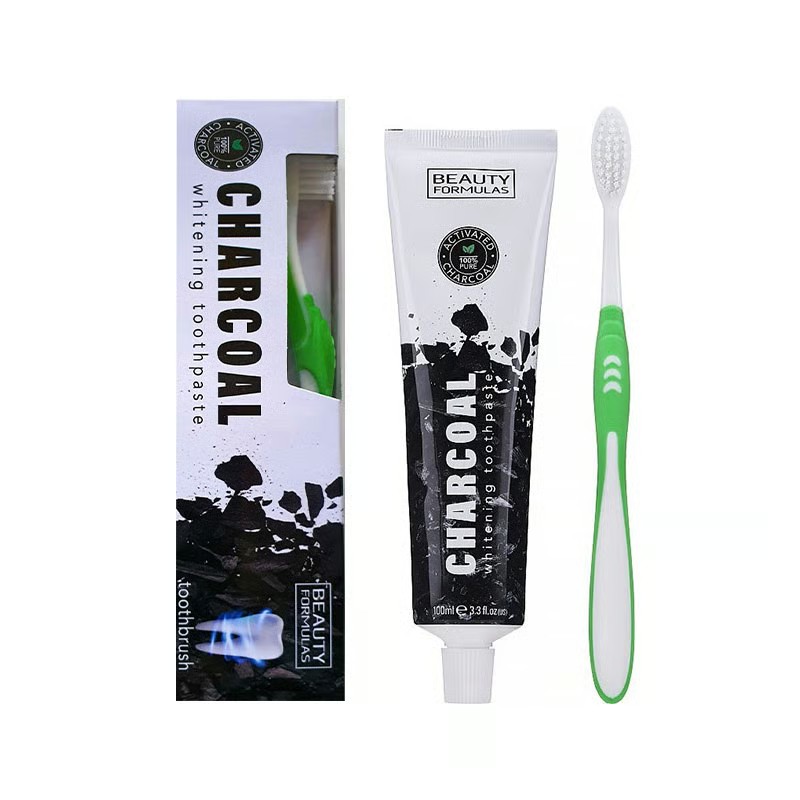 BEAUTY FORMULAS Whitening Toothpaste Charcoal 100ml + toothbrush بيوتي فورملا معجون اسنان مبيض بالفحم مع فرشاة اسنان