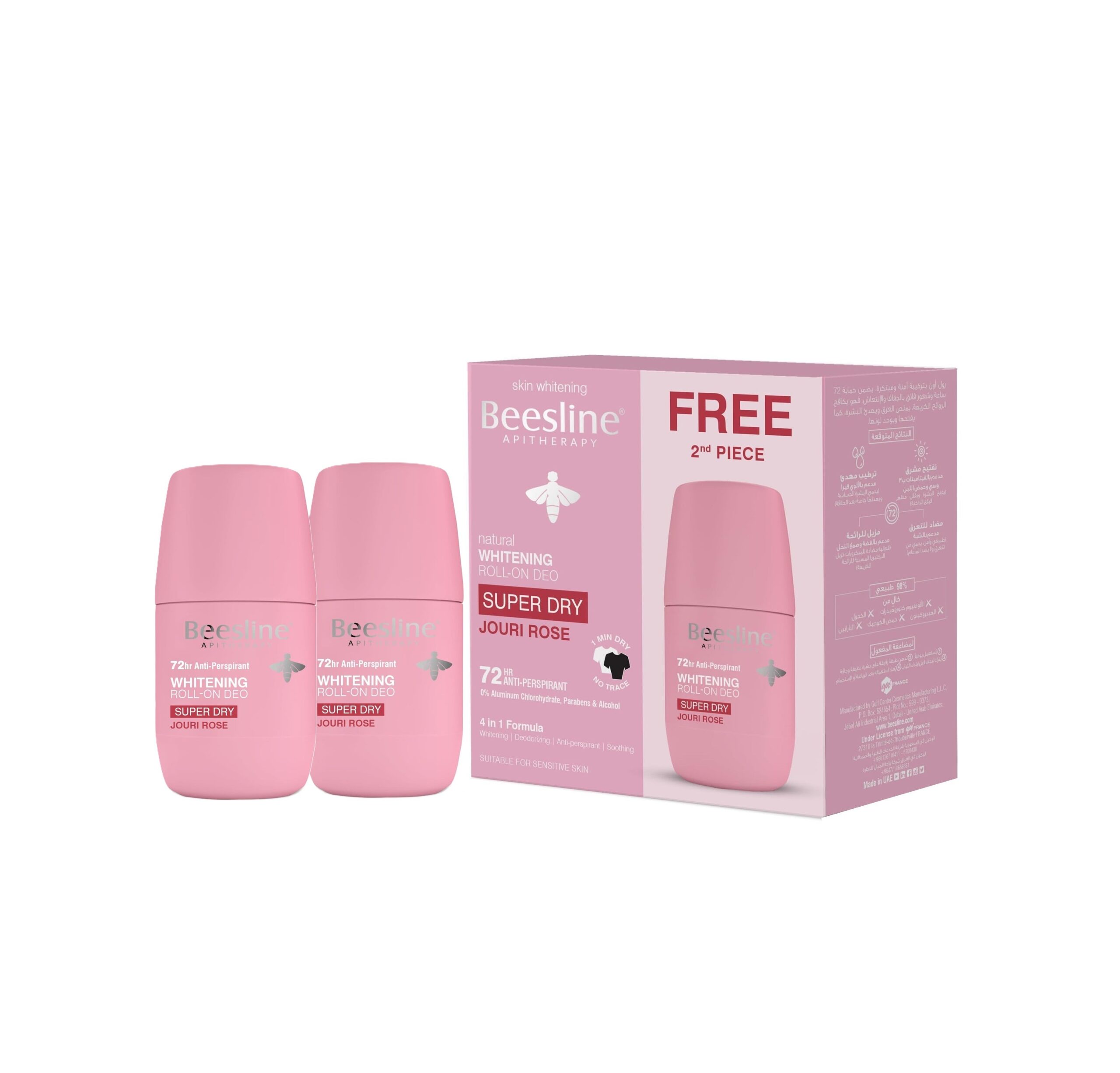BEESLINE Natural Whitening Roll On Deodorant Super Dry 72h 1+1 50ml – Jouri Rose بيزلاين مزيل تعرق برائحة ورد الجوري