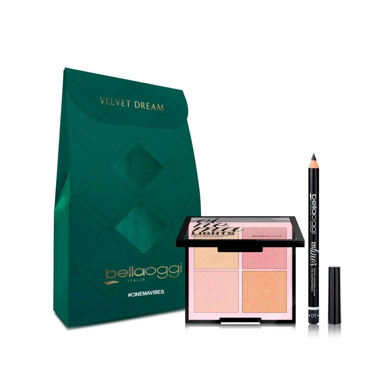 BELLAOGGI MINI KIT CINEMA VIBES (CINEMA LIGHTS PALETTE + EYE LINER 01) بيلا أوجي بكج مكياج عيون