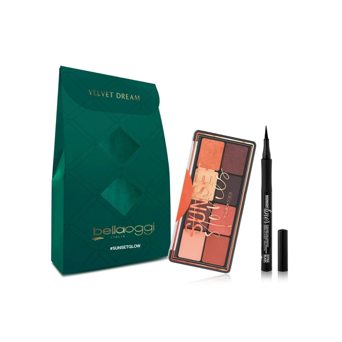 BELLAOGGI MINI KIT SUNSET GLOW (EYESHADOW PALETTE + EYE LINER 01) بيلا أوجي بكج مكياج عيون