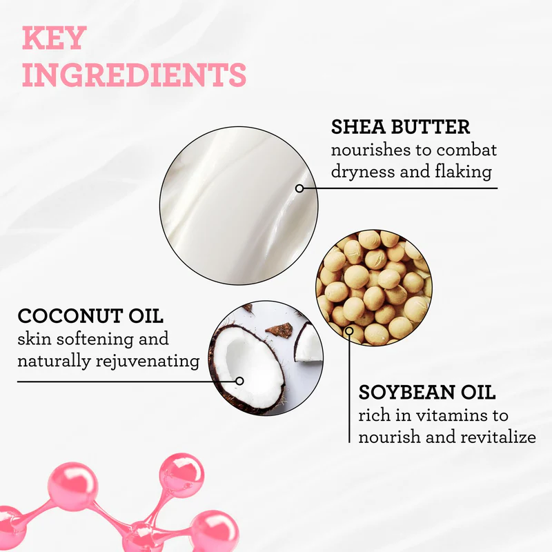 مكونات مهدئة ومرطبة غني بفيتامين E وزبدة الشيا المركزة، يحتوي هذا اللوشن المهدئ على زيوت نباتية مرطبة لترطيب عميق. خالٍ من البارابين والمكونات الضارة.