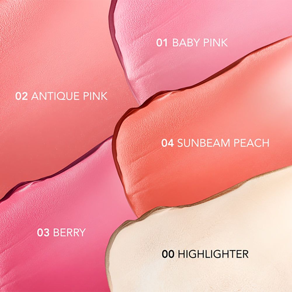 | colors | 00 HIGHLIGHTER, 01 BABY PINK, 02 ANTIQUE PINK, 03 Berry, 04 SUNBEAM PEACH |