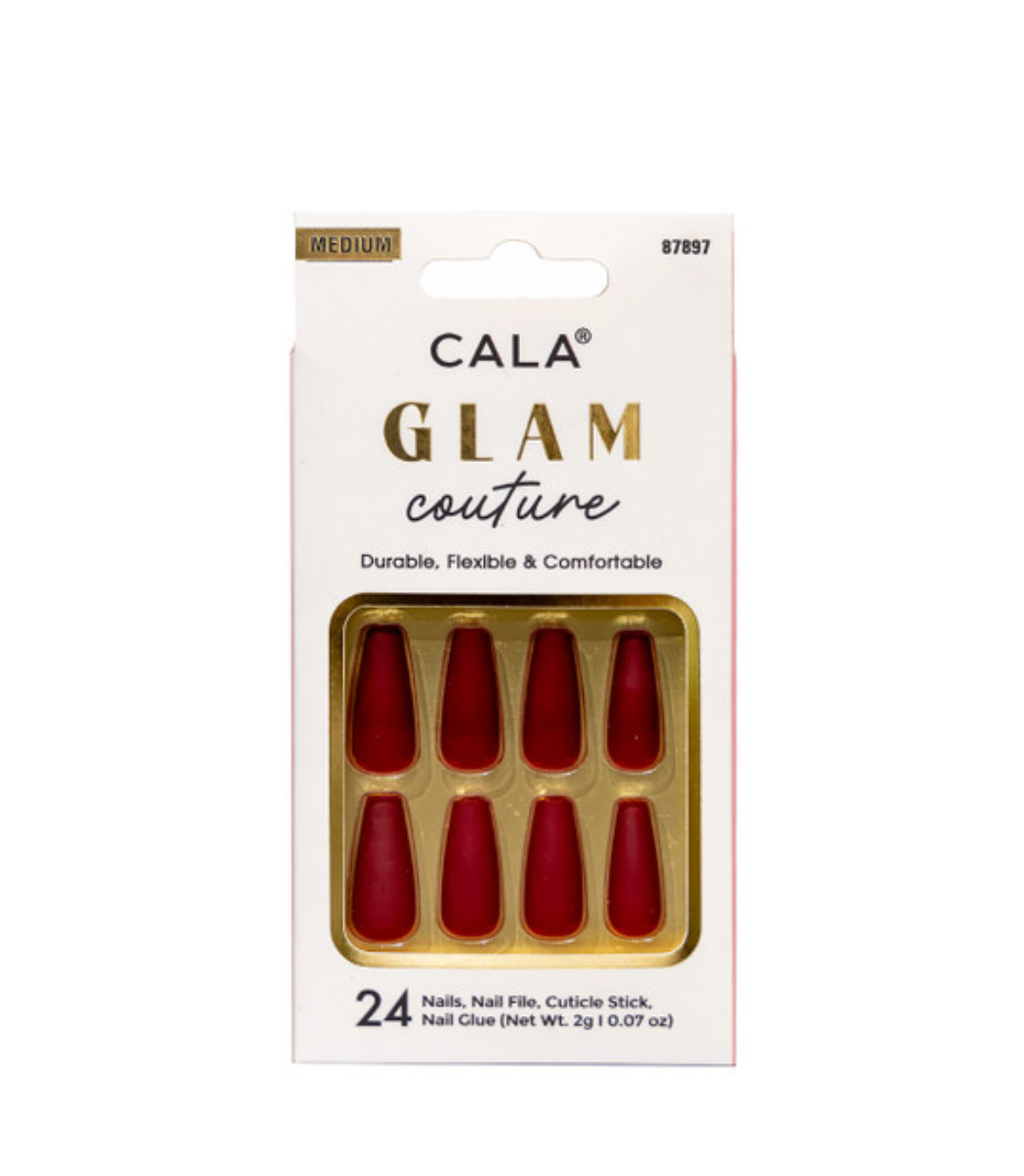 CALA GLAM COUTURE | MEDIUM COFFIN RED MATTE PRESS ON NAILS جلام كوتور | أحمر قاتم متوسط مطفي أظافر لاصقة