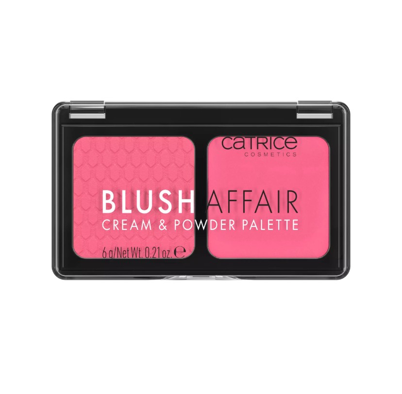 باليت Catrice Blush Affair 020 تجمع بين أحمر خدود كريمي وبودرة غنية بالأصباغ تمنح خدودًا وردية مشرقة ويمكن استخدامها منفردة أو بطبقات.