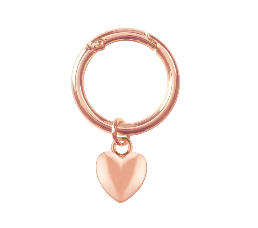خاتم تعليقة Catrice HOLLYGLAZING بتصميم وردي معدني مع تعليقة قلب، يتيح حمل وربط منتجات المجموعة بسهولة أثناء التنقل.