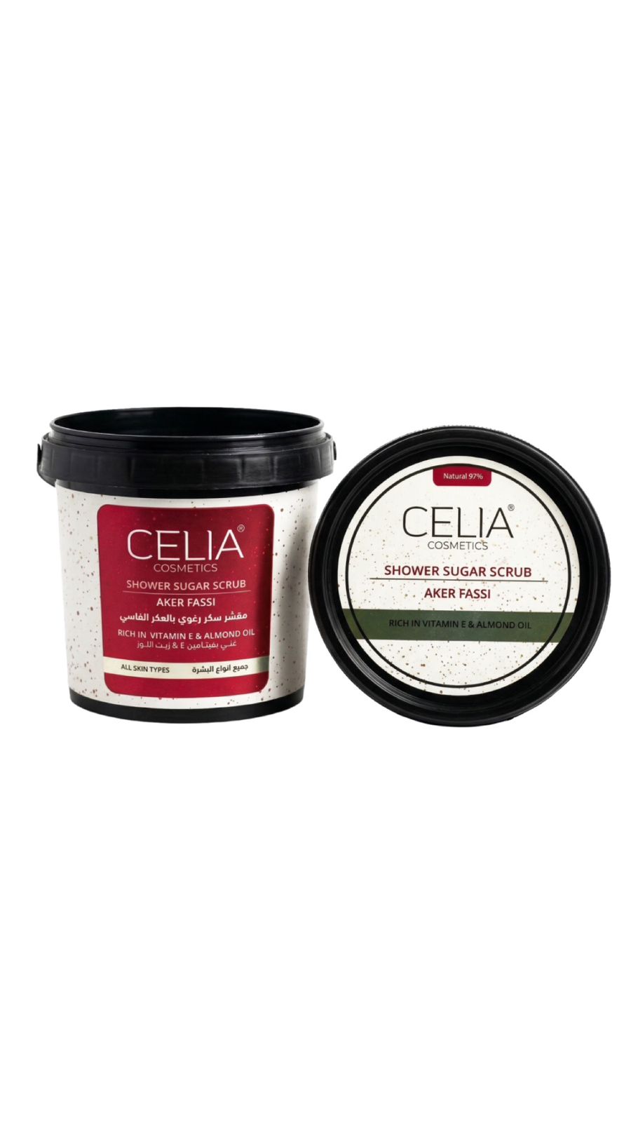 CELIA COSMETICS SHOWER SUGAR SCRUB AKER FASSI 600g سيليا سكراب رغوي مقشر للجسم