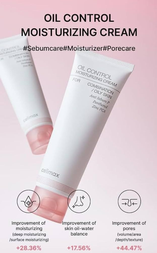 Celimax Oil Control Moisturizing Cream كريم مرطب خصيصاً للعناية بالبشرة الدهنية والمختلطة يعمل على تنظيم إفراز الزيوت الزائدة في البشرة وتقليل اللمعان مما يمنحها مظهراً مطفياً (Matte) يتميز بقوام خفيف الوزن يمتصه الجلد بسرعة دون ترك أي أثر دهني أو ثقل على البشرة يساعد في تصغير مظهر المسام الواسعة وتنعيم ملمس الجلد يحقق التوازن المثالي بين مستويات الرطوبة والزيوت في البشرة Anti Sebum-P مركب للتحكم في إنتاج الدهون وتقليل حجم المسام الزنك (Zinc PCA) يساعد في تقليل اللمعان وموازنة الإفرازات الدهنية البانثينول (فيتامين B5) يعمل كمهدئ للبشرة ويساعد في الاحتفاظ بالرطوبة داخلها.