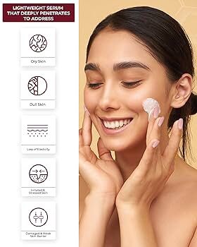 يعمل السيروم على تقليل ظهور التجاعيد والخطوط الدقيقة، ويعزز مرونة الجلد ويشد البشرة
