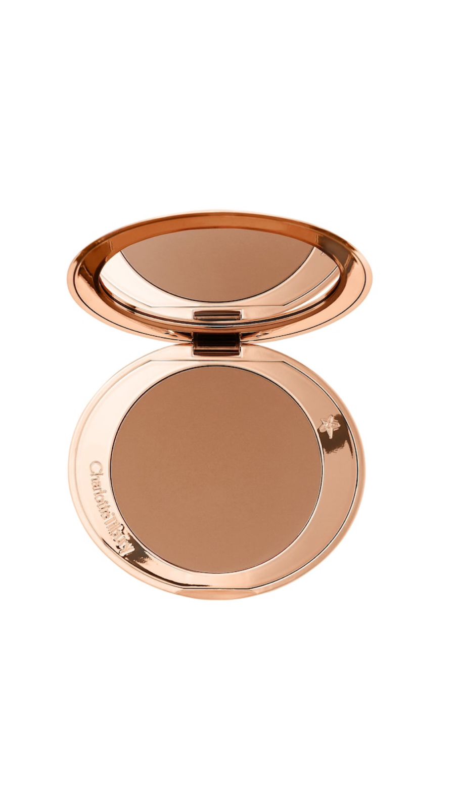 برونزر من CHARLOTTE TILBURY مخصصة للوجه والجسم مصممة لمنح البشرة مظهراً برونزياً طبيعياً وكأنها فلتر يتميز بتقنية الميكرو باودر التي تعمل على اخفاء المسام والتخلص من الخطوط الدقيقة بالاضافة الى يوفر تغطية قابلة للبناء مع ملمس حريري يمتزج بسهولة على البشرة دون أن يتكتل.