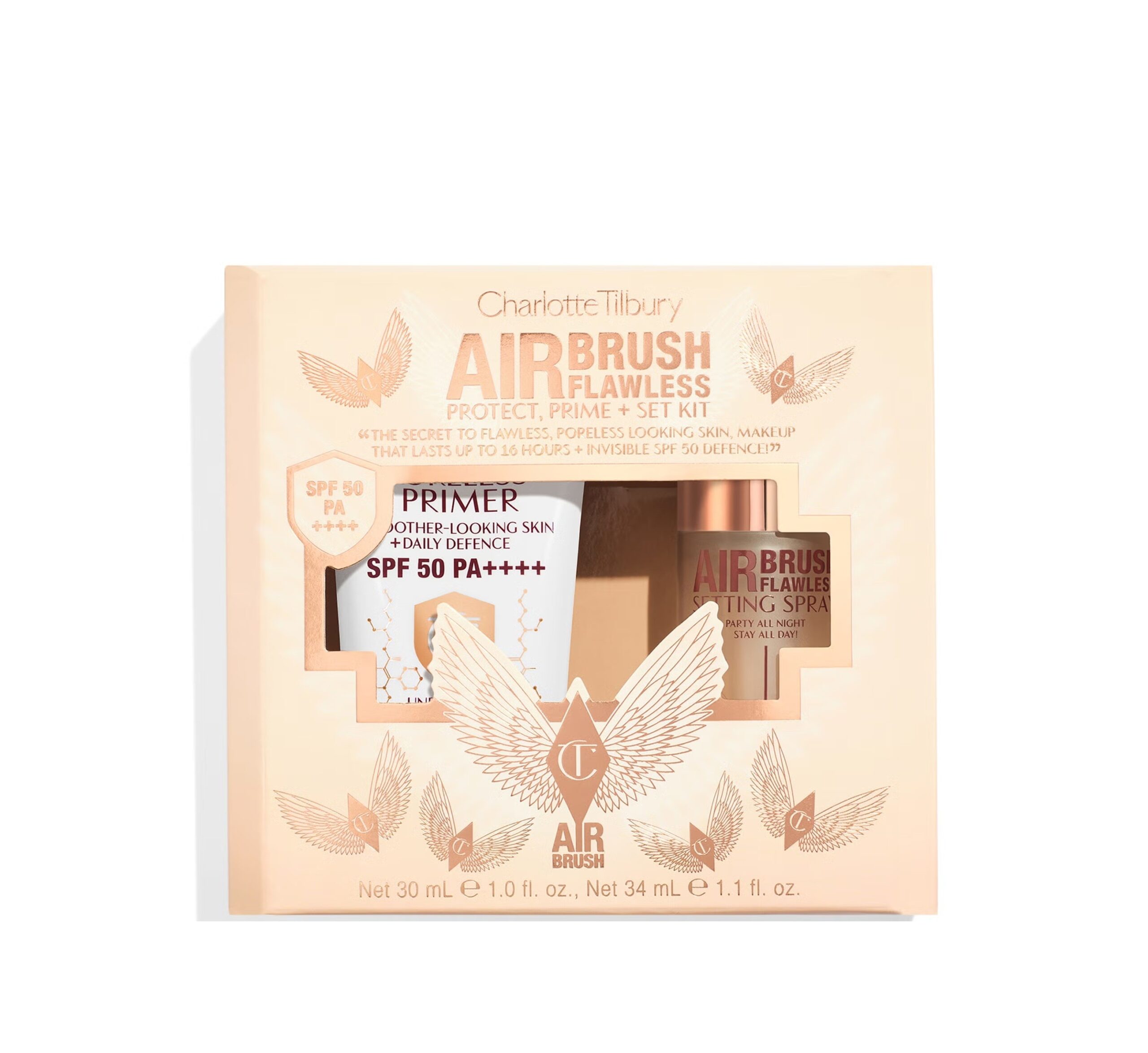 احصلي على إطلالة مثالية كالفلتر مع طقم Airbrush Flawless Protect, Prime + Set Kit من شارلوت تيلبري.
