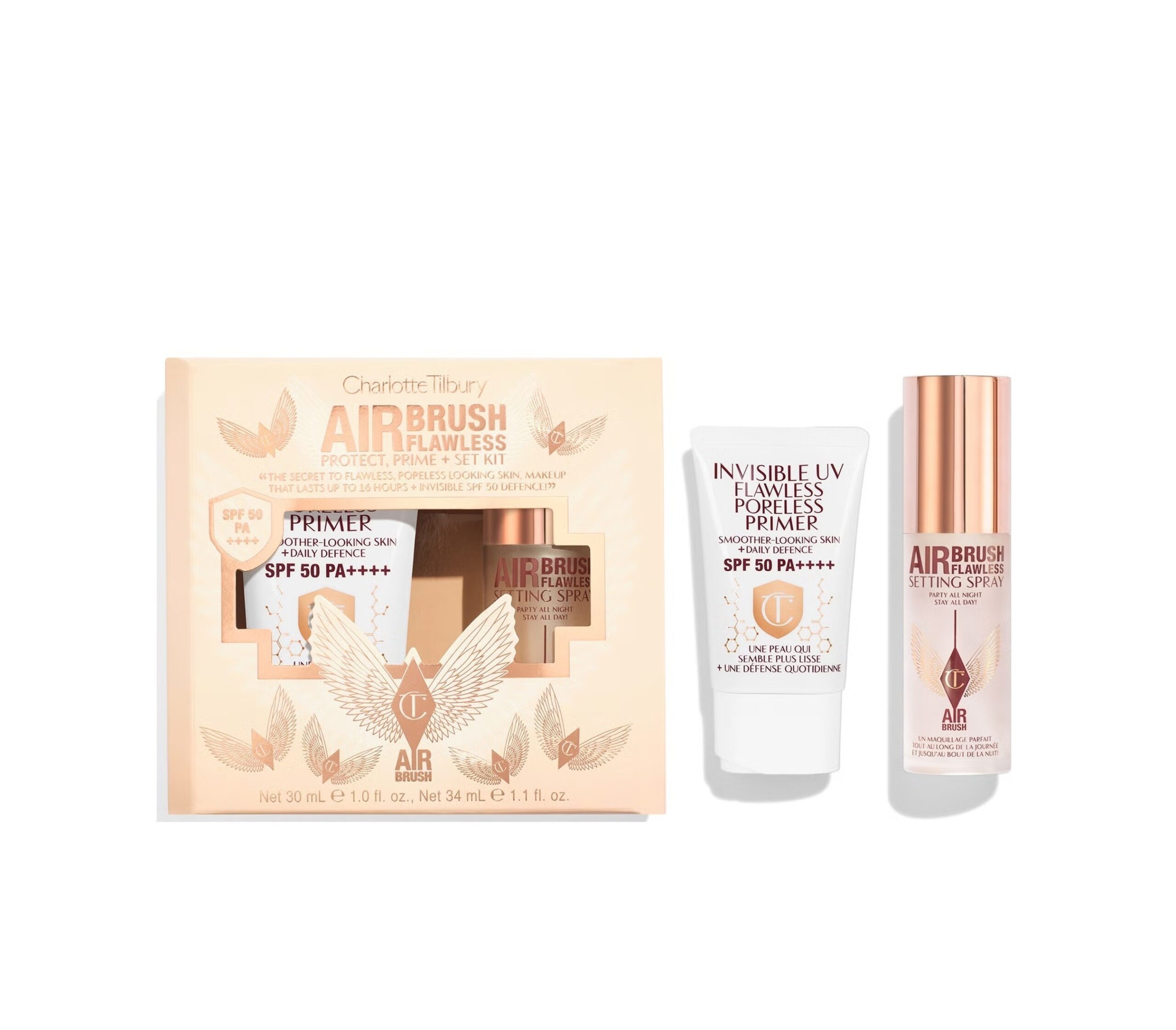 CHARLOTTE TILBURY Airbrush Flawless (Primer 30ml + Setting Spray 35ml) Set Kit تشارلوت مجموعة مكياج للبشرة