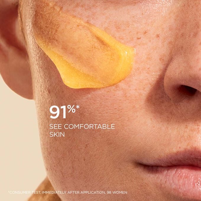 يزيل الشوائب والخلايا الميتة، ويُحسّن ملمس البشرة بفضل تركيبته الزيتية الهلامية وبلورات السكر الدقيقة المشتقة من الشمندر.