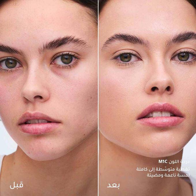 يتميز المنتج بوجود قرص قابل للتعديل على العبوة للتحكم في كمية المنتج ومستوى التغطية المطلوب يمكن دمجه وتطبيقه باستخدام الأصابع أو فرشاة فاونديشن مخصصة للحصول على أفضل النتائج.