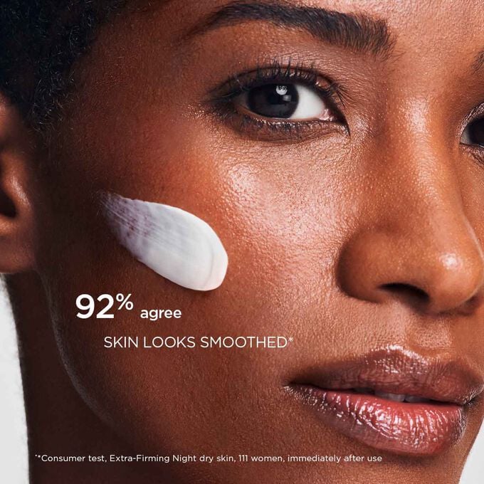 تتميز مجموعة Extra-Firming بتقنية حصرية تساعد على زيادة احتياطيات الكولاجين في البشرة* [COLLAGEN]³ TECHNOLOGY. يتم زيادة احتياطيات الكولاجين في الجلد بنسبة 53%. * *اختبار خارج الجسم الحي على عينات نباتية تم تصويرها ضوئيًا، لقياس كمية الكولاجين عالي الجودة والبنية الجيدة.