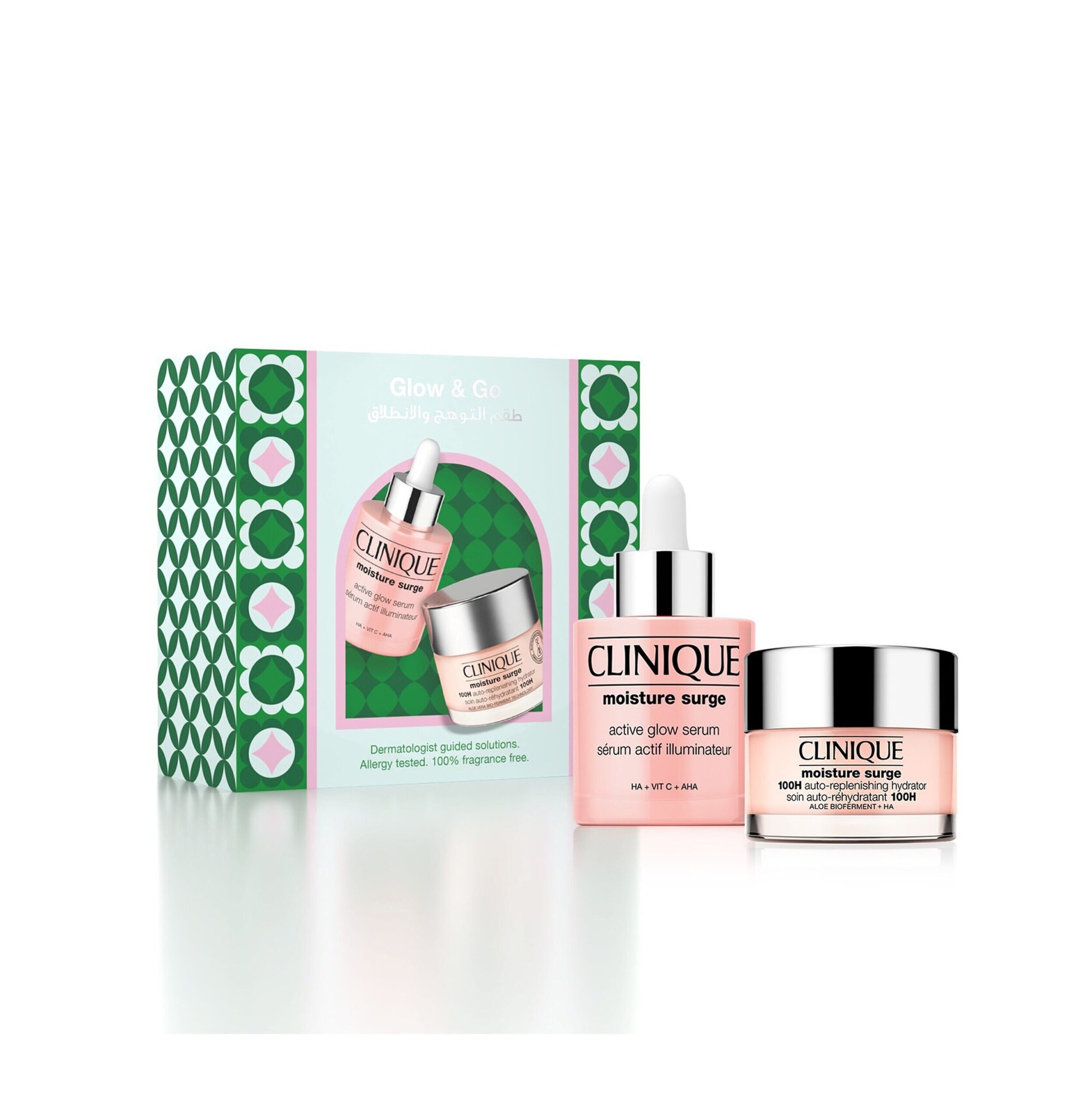 CLINIQUE Glow & Go Moisture Surge Hydration (Hydrator 50ml + Serum 30ml) Set كلينك سيت لترطيب والعناية بالبشرة.