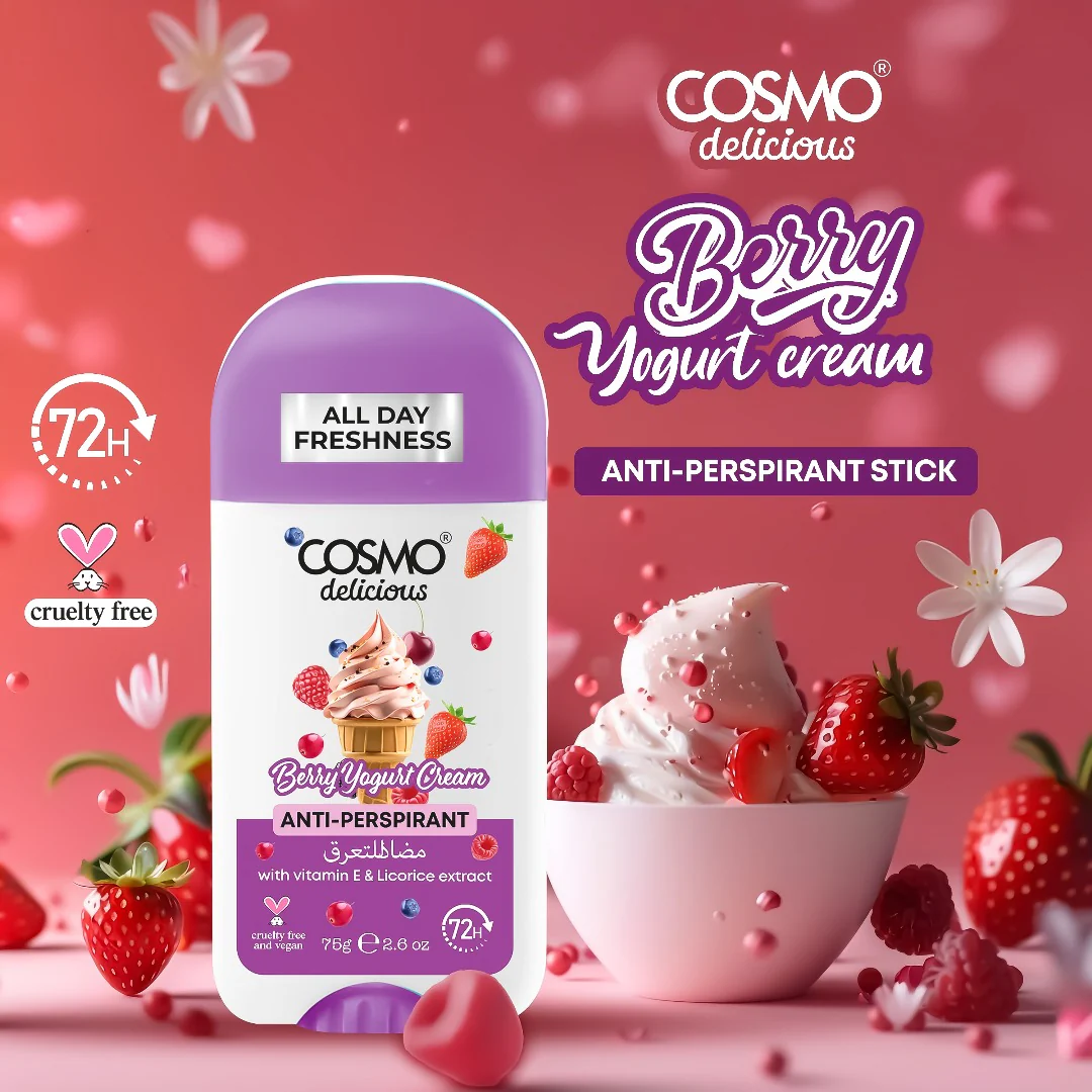 COSMO Berry Yogurt Cream Anti-Perspirant Stick كوزمو مزيل عرق بنكهة كريمة الزبادي بالتوت