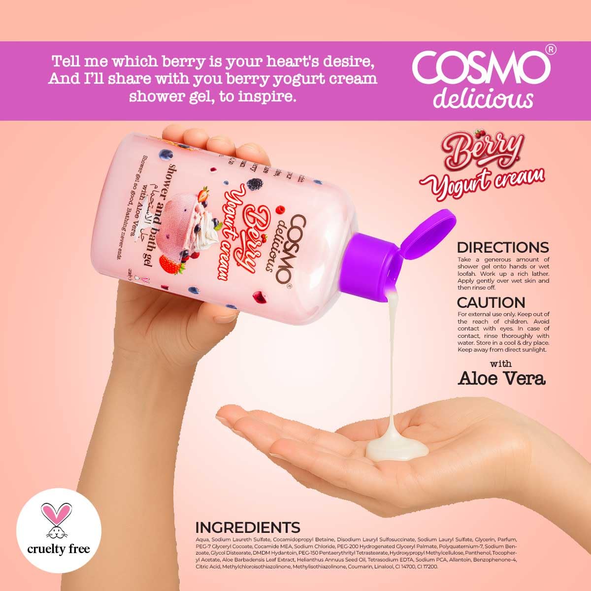 نعومة فائقة وتغذية غنية بزبدة الشيا، مع عبير التوت والزبادي الذي يمنحكِ إحساساً بالحيوية والانتعاش طوال اليوم.