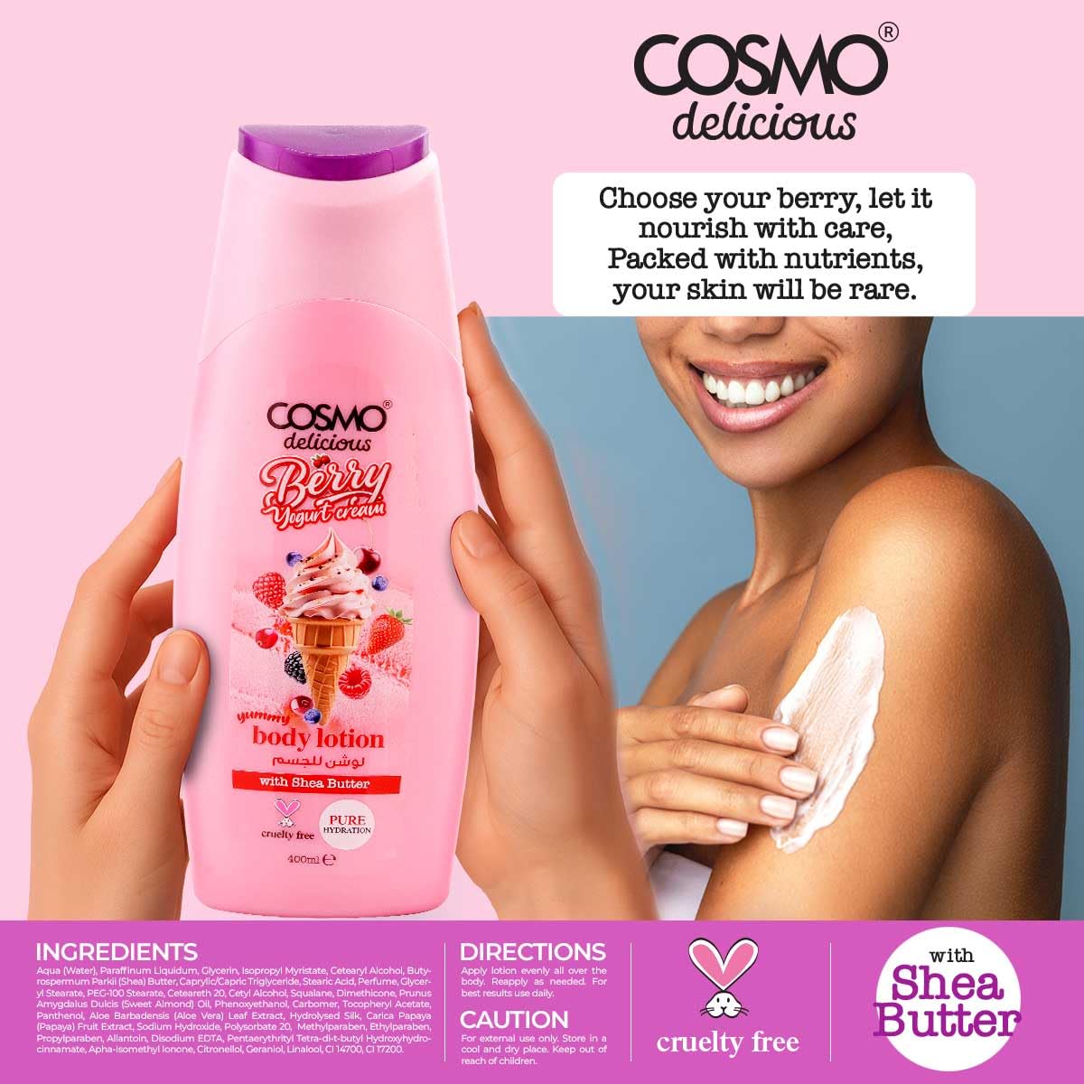 COSMO Delicious Berry Yogurt Cream 3 Pieces Gift Set For Women & Men (150ml +350ml +200ml ) كوزمو مجموعة العناية بالبشرة برائحة كريمة الزبادي و التوت
