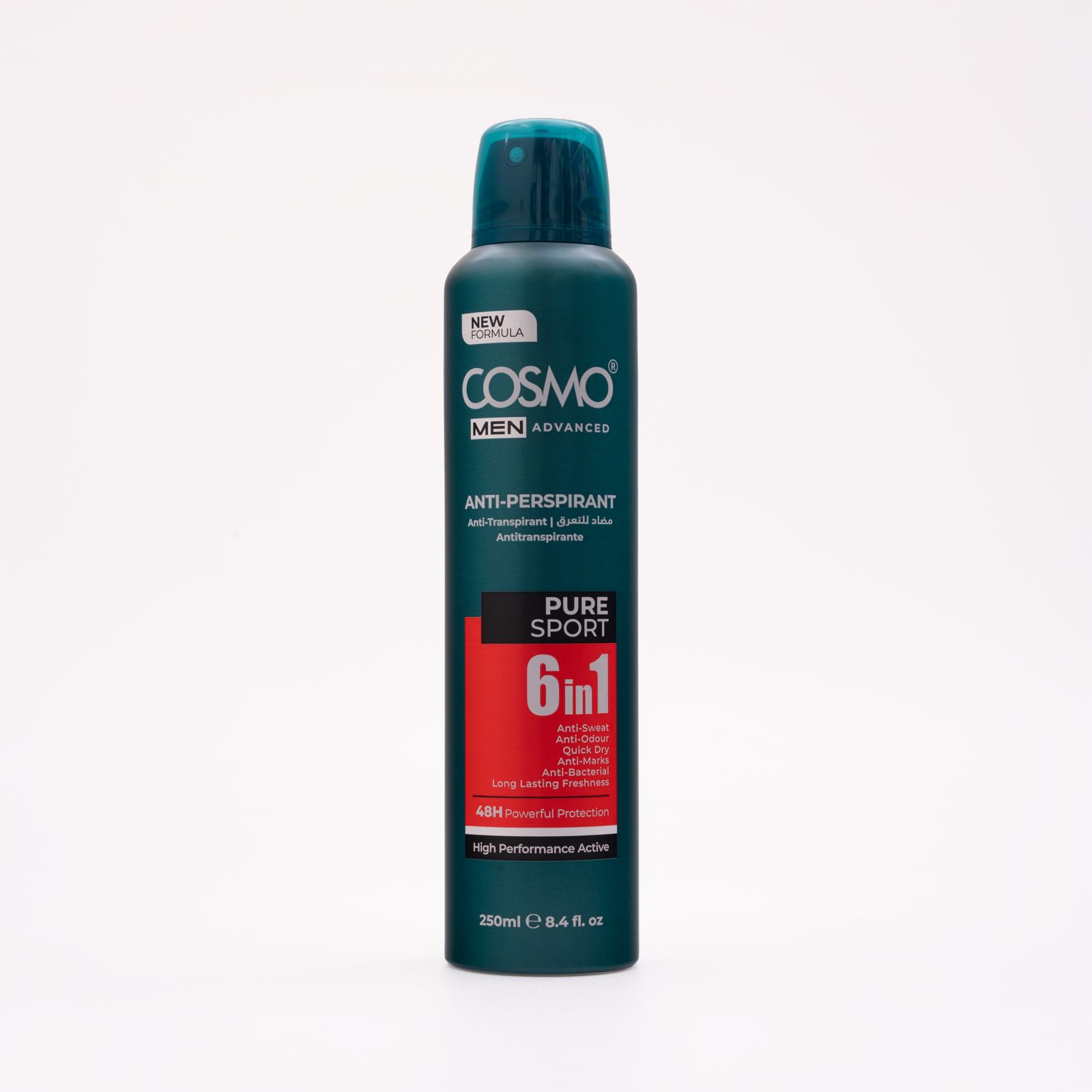 COSMO MEN ADVANCED ANTI-PERSPIRANT PURE SPORT 6in1 250ml كوزمو رذاذ مزيل تعرق