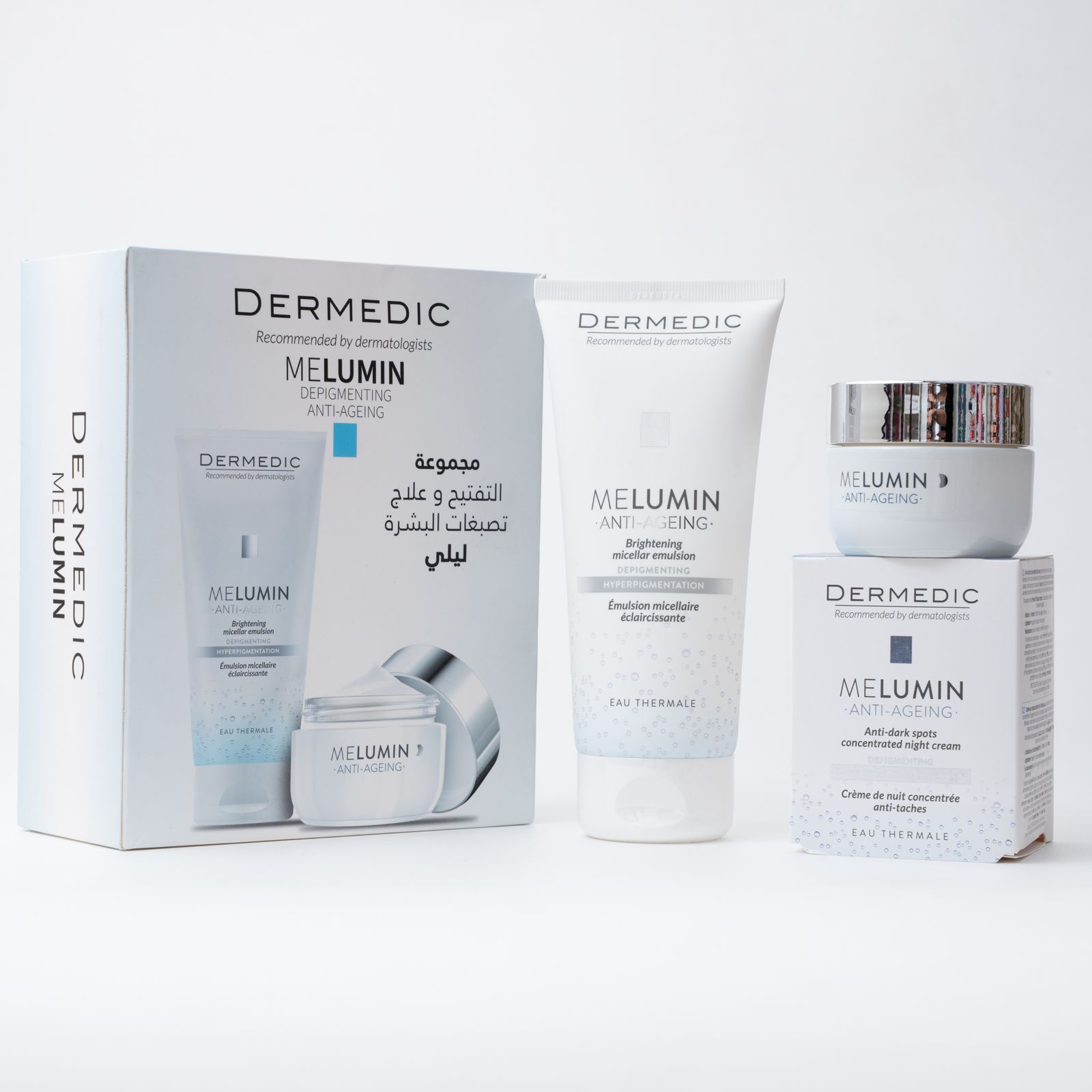 Dermedic melumin depigmrnting anti aging set مجموعة تفتيح وعلاج تصبغات البشرة الليلي