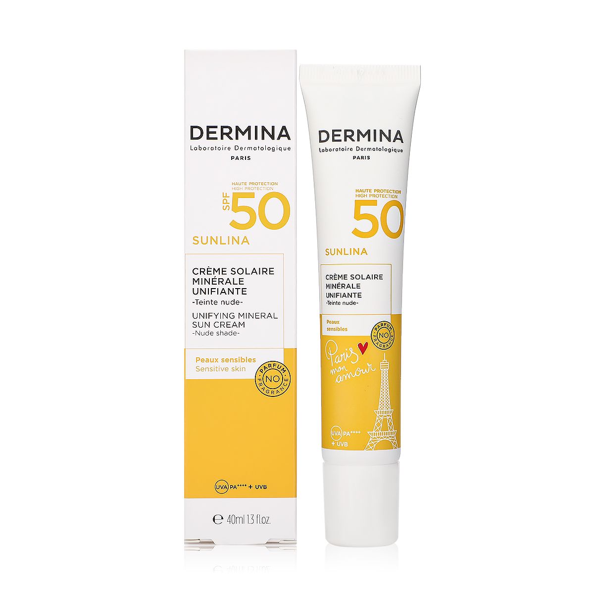 Dermina unifying mineral sun cream spf50 tinted-nude shade ديرمينا واقي حماية من الشمس ملون