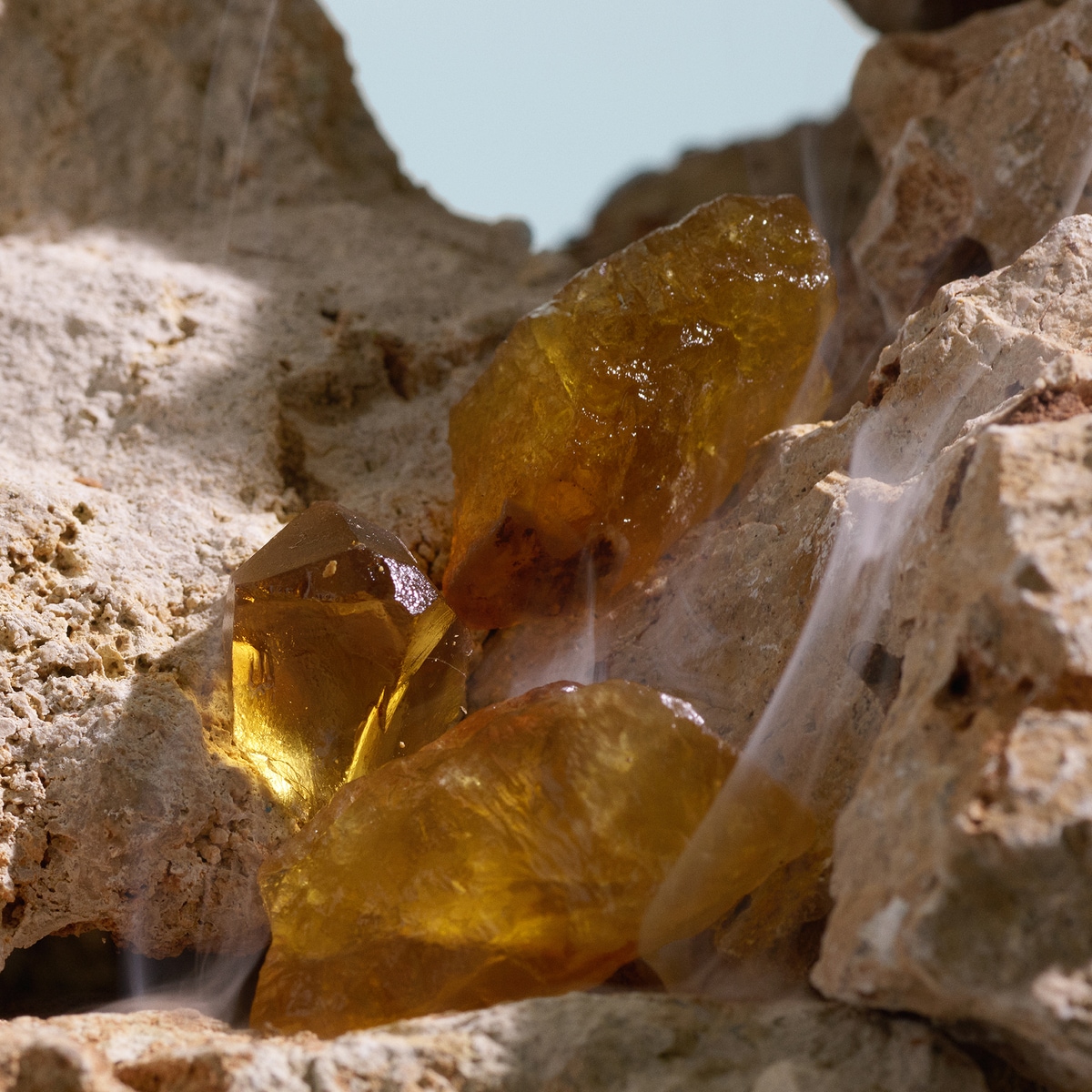 قلب العطر: في قلب العطر، يتجلى راتنج العنبر اللابدانوم بدفء ساحر ولمسات جلدية دخانية.