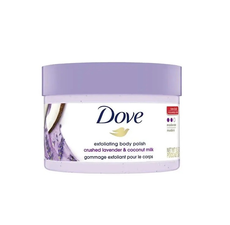 DOVE exfoliating body polish crushed lavender & coconut milk 298g دو مقشر الجسم بخلاصة اللافندر المطحون وحليب جوز الهند
