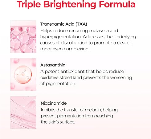 قناع ليلي يساعد على تحسين مظهر التصبغات واستعادة إشراقة البشرة بحلول الصباح. يعمل على تقليل مظهر البقع الداكنة والكلف وتفاوت لون البشرة بفضل تركيبته الغنية بمكونات فعالة مثل حمض الترانيكساميك، الأستازانتين، والنياسيناميد.