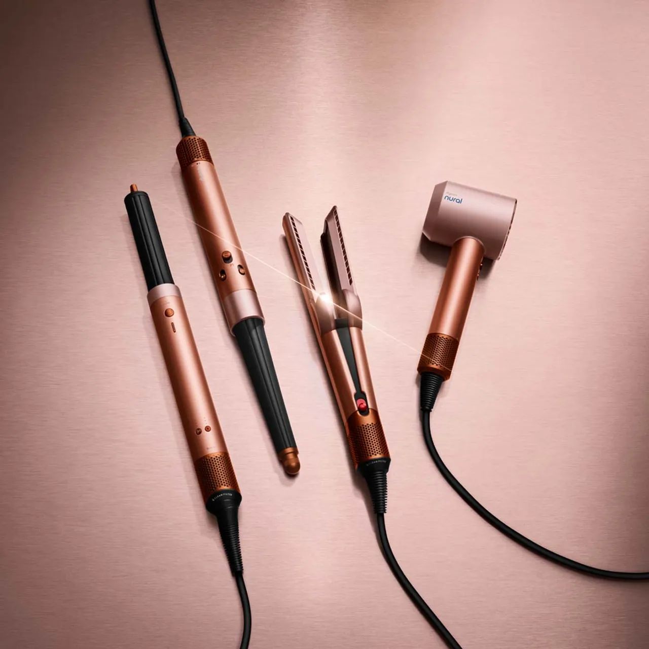 جهاز تسريح الشعر بمختلف اشكاله من DYSON حيث يعمل على فرد الشعر وتسريحة بشكل سلس وسهل مع خاصية التحكم بالحرارة حيث يمنحكِ تسريحة مثالية وشعر متصفف يناسب إطلالتكِ.