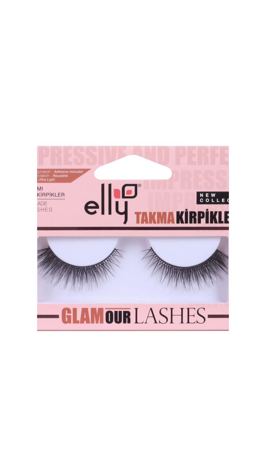 رموش اصطناعية من ELLY الذي يعطي مظهراً كثيفاً وطويلاً مما يجعلها مثالية للمناسبات، السهرات أو الإطلالات التي تتطلب مكياجاً بارزاً (Full Glam) توصف الرموش بأنها Ultra Light مما يعني أنها مريحة عند الارتداء ولا تسبب ثقلاً على الجفن الرموش مصممة لتكون قابلة لإعادة الاستخدام (Reusable) لعدة مرات بشرط العناية بها وتنظيفها من بقايا اللاصق بعد كل استخدام.