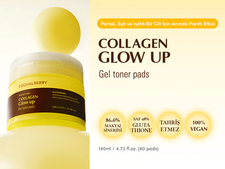 EQQUALBERRY Collagen Glow Up Gel Toner 60-Toner pads 140ml ايكوال بيري تونر جل الكولاجين 60 قطعة تونر