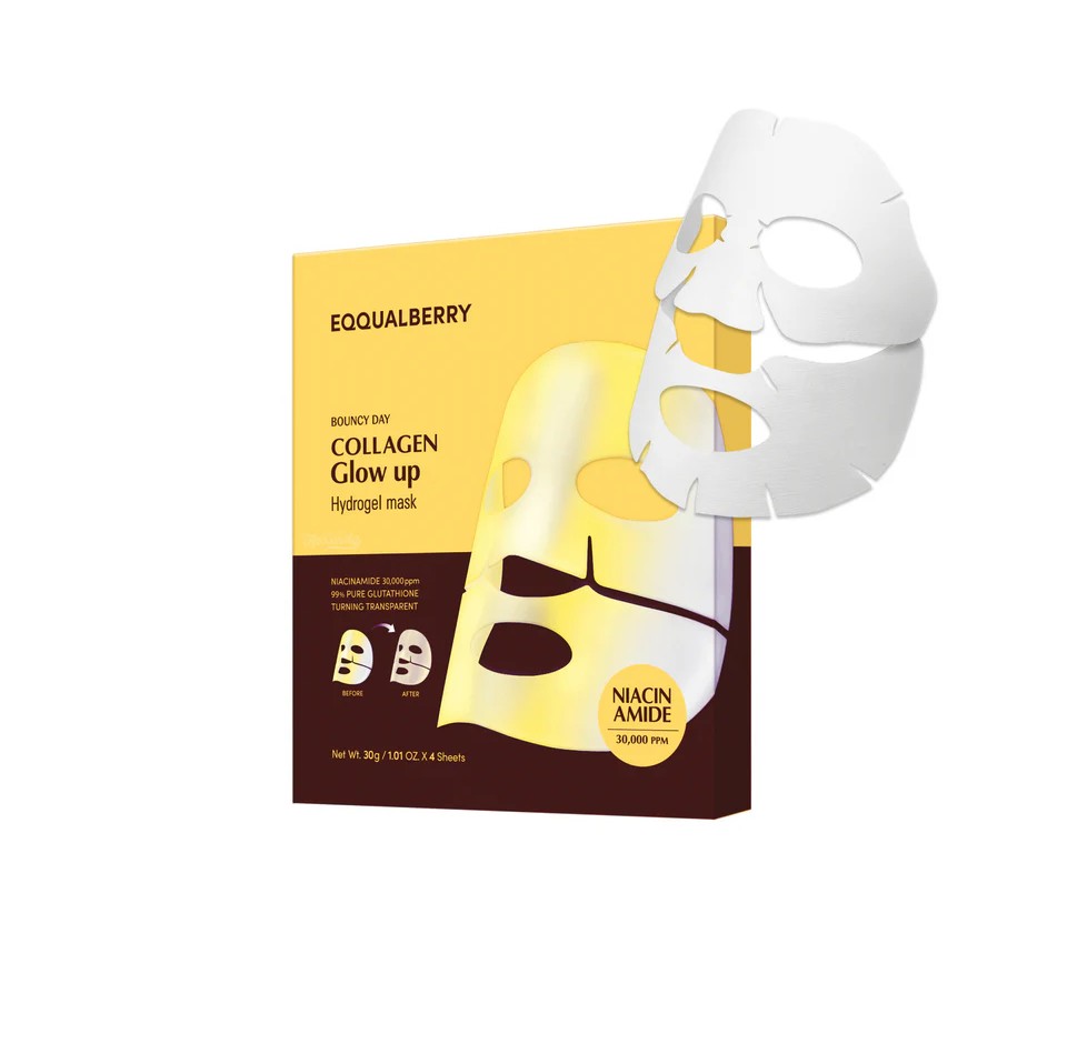 EQQUALBERRY Collagen Glow Up Hydrogel Mask (Pack of 4) 30gx 4pcs ايكوال بيري قناع الكولاجين الهيدروجيلي لتفتيح البشرة