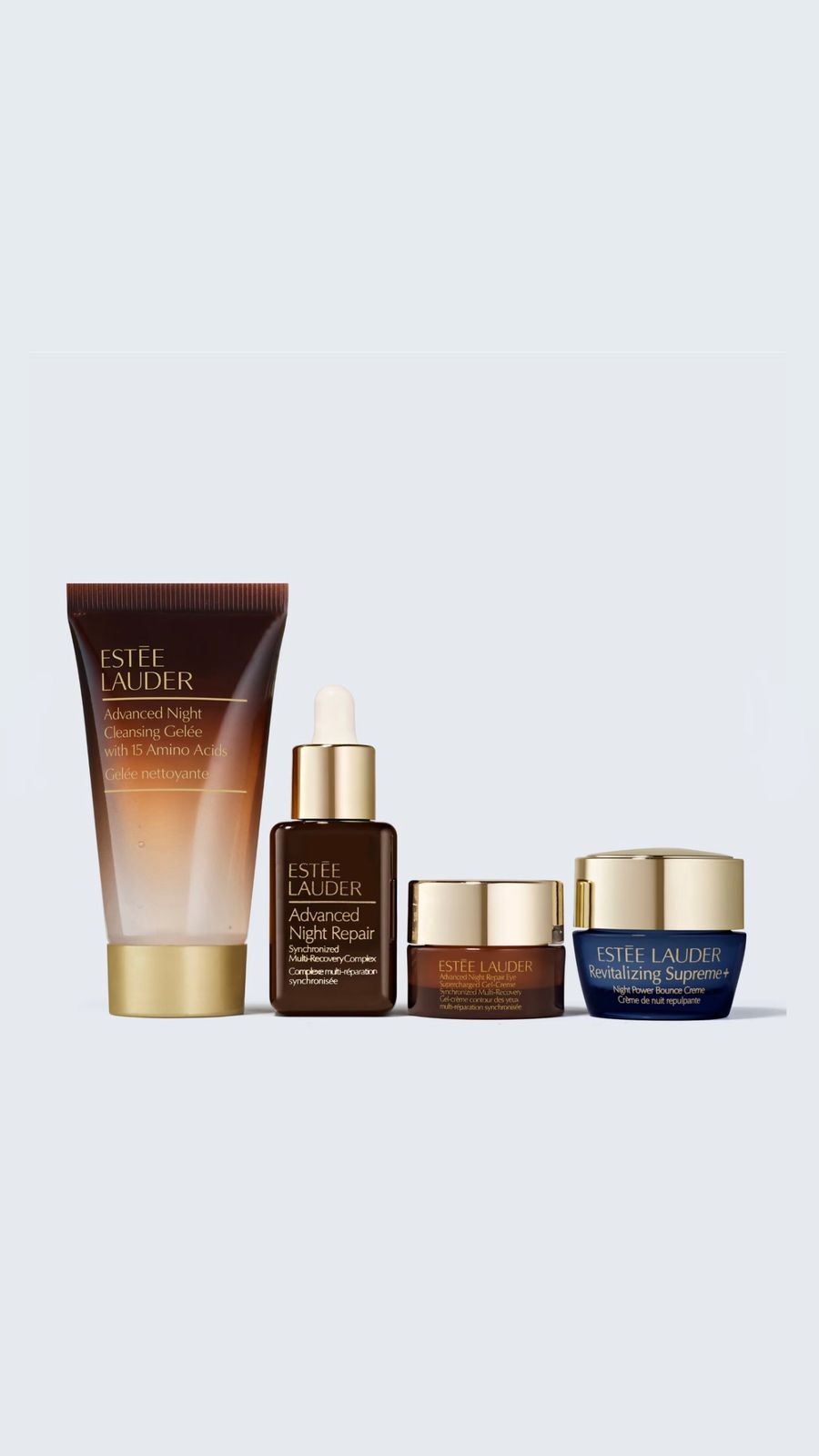 مجموعة هدايا Advanced Night Repair للعناية بالبشرة من Estée Lauder تحتوي المجموعة على منتجات بحجم مناسب للسفر لتوفير روتين متكامل للعناية بالبشرة تساعد هذه المنتجات على ترطيب البشرة وجعلها أكثر نعومة وشبابًا.