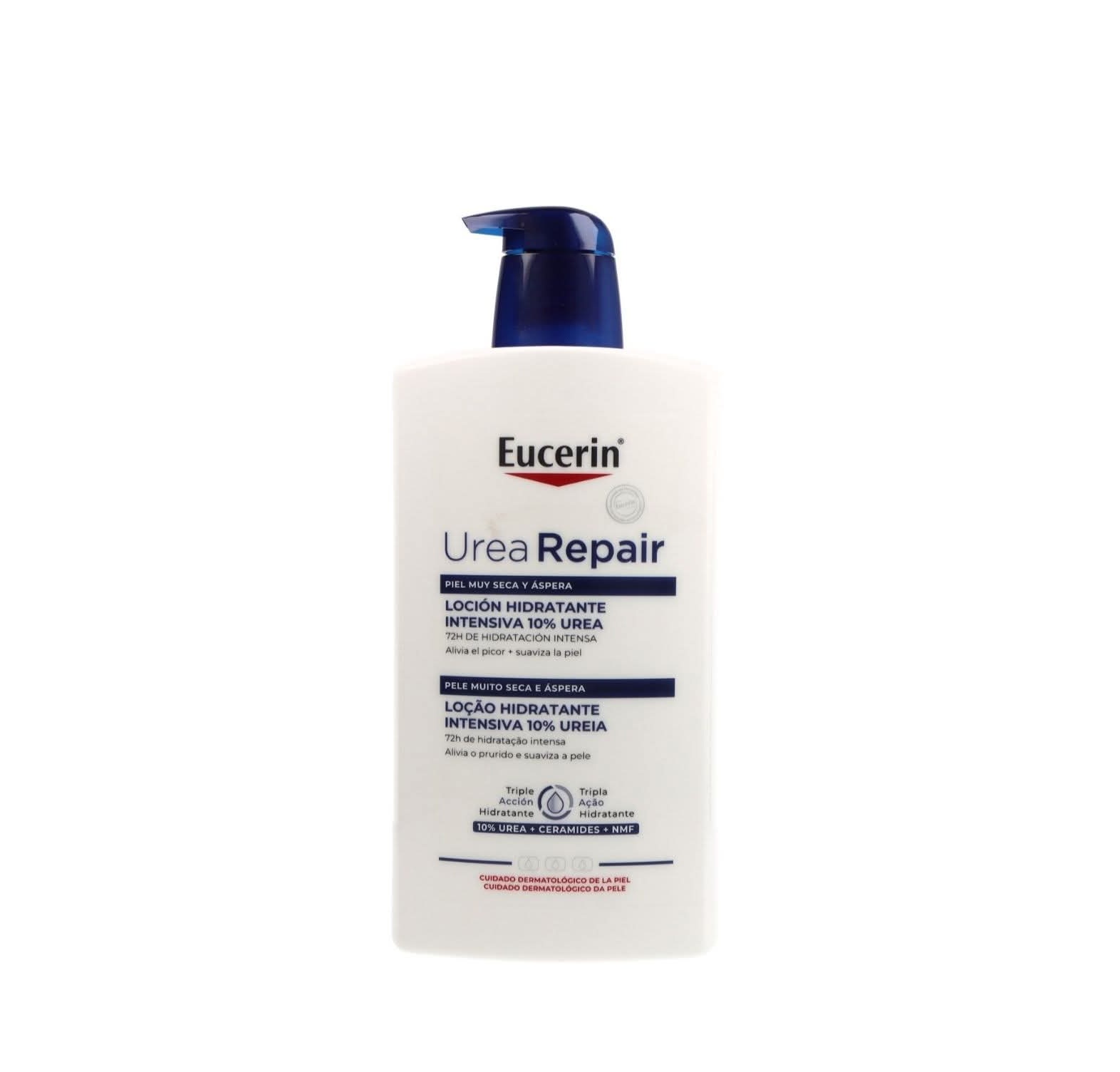 لوشن الترطيب المكثف UreaRepair 10% يوريا مع مركب الترطيب الثلاثي لتخفيف فوري لعلامات البشرة الجافة جدًا: الخشونة، الاحمرار، التقشر، الحكة، والشعور بالشد. ترطيب مكثف لمدة 72 ساعة وتقوية الحاجز الواقي للبشرة.