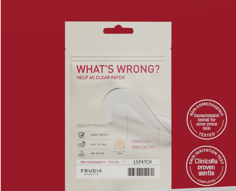 FRUDIA Whats Wrong Help AC Clear Patch – 15 PATCH فروديا لاصقات العناية بالبشرة تحمي البثور من الملوثات وتمتص الإفرازات بفعالية